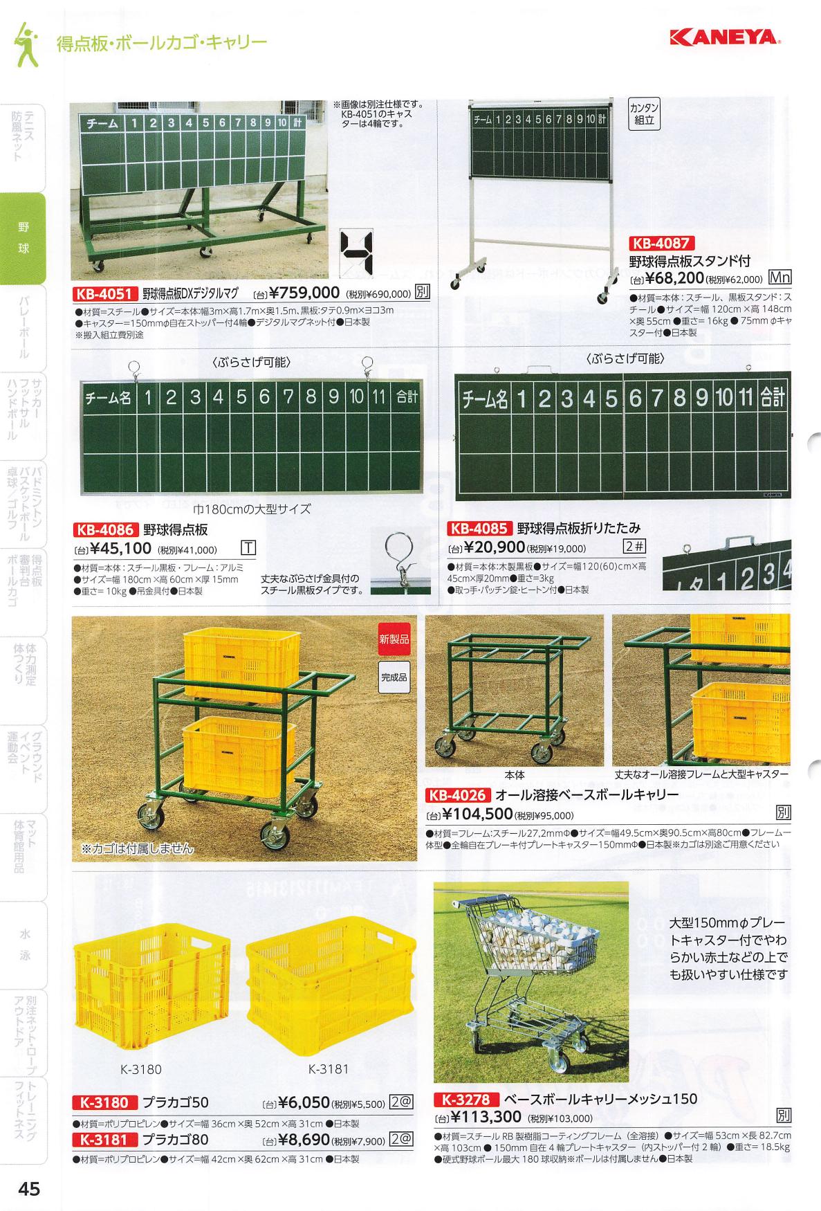 2025|鐘屋産業(KANEYA)|KB-4085|野球得点板折りたたみ|¥19000