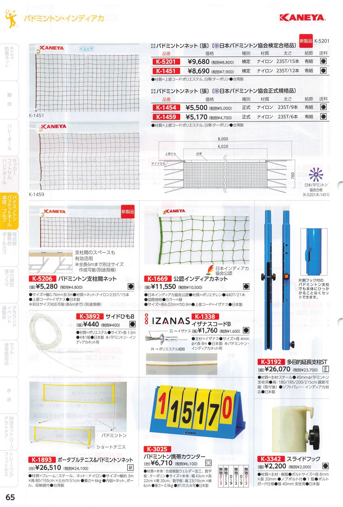 2025|鐘屋産業(KANEYA)|K-1459|バドミントンネットN6|¥4700