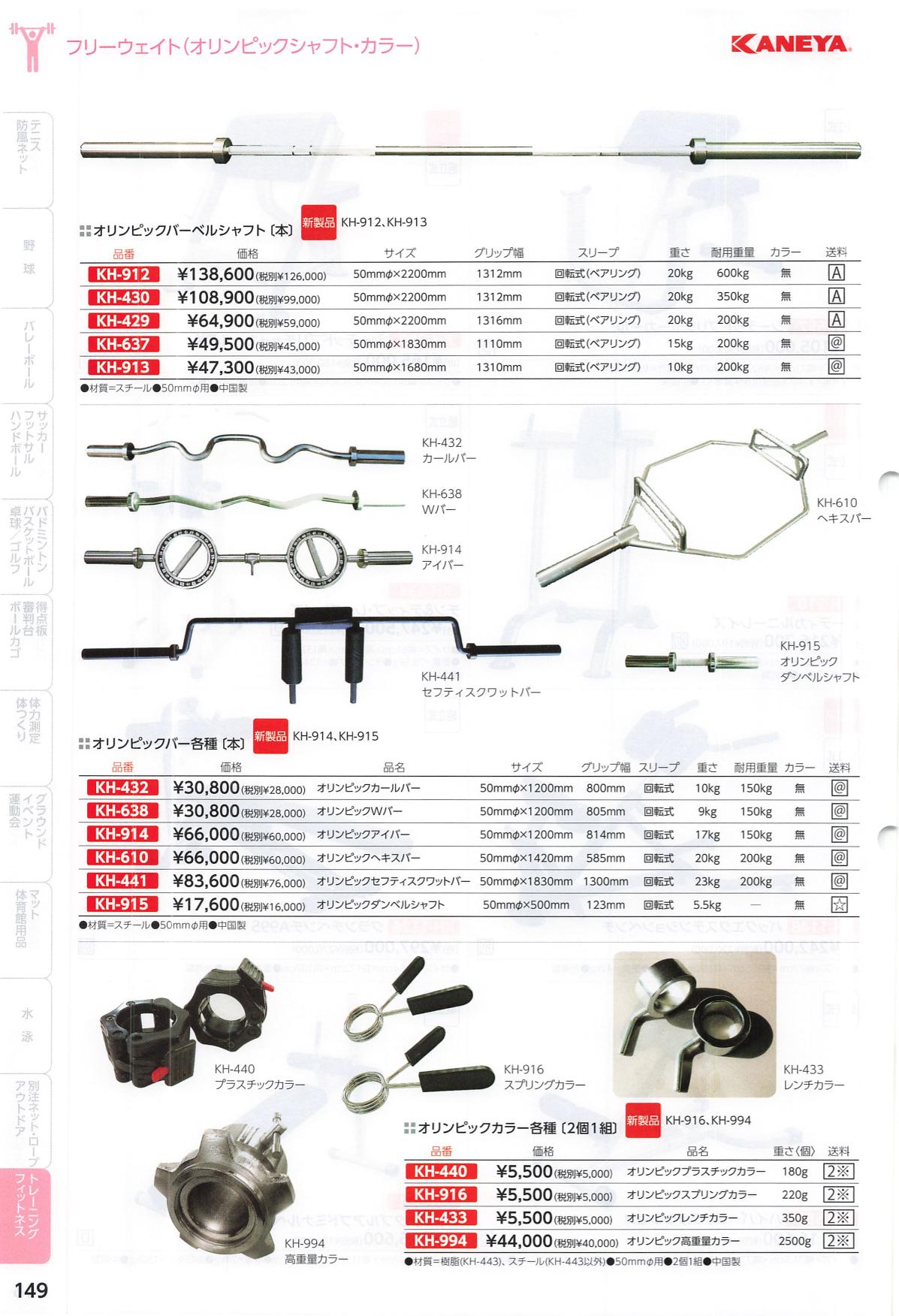2025|鐘屋産業(KANEYA)|KH-915|オリンピックダンベルシャフト50-500|¥16000